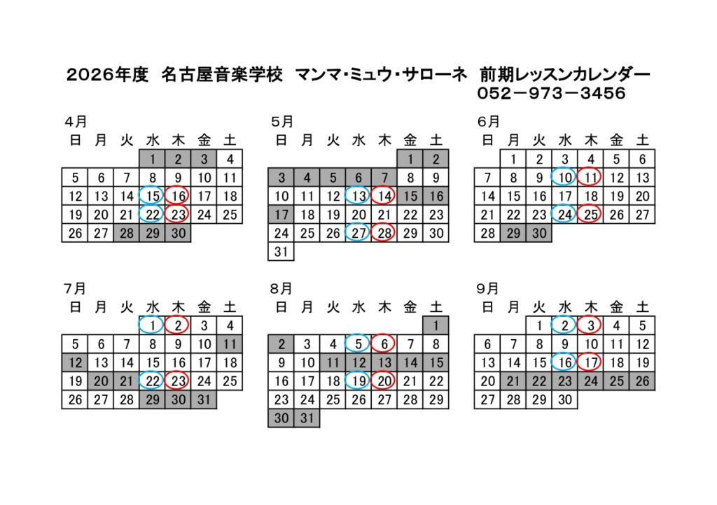 レッスンカレンダー