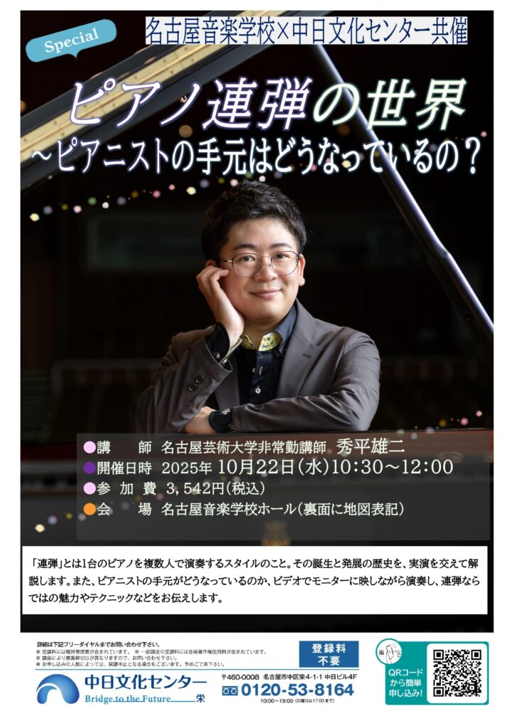 〈名古屋音楽学校×中日文化センター共催〉ピアノ連弾の世界~ピアニストの手元はどうなっているの?~