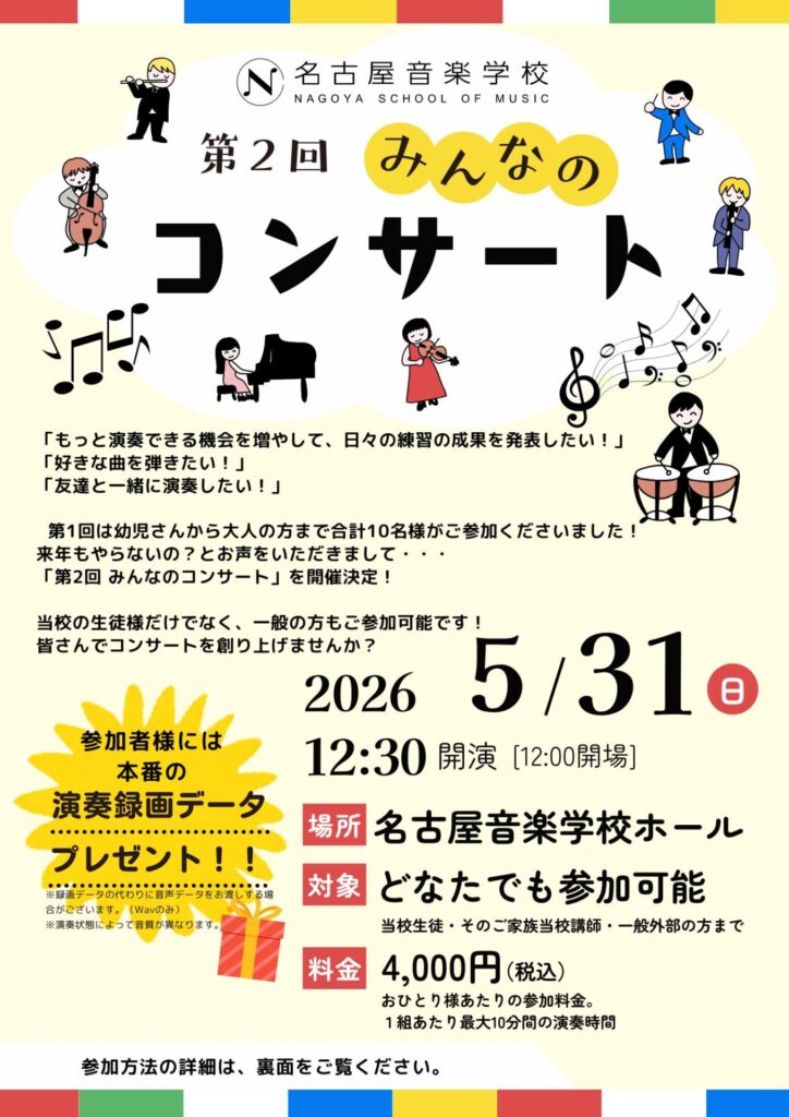 など当校生徒様や先生からのご要望を受け「みんなのコンサート」を開催します!