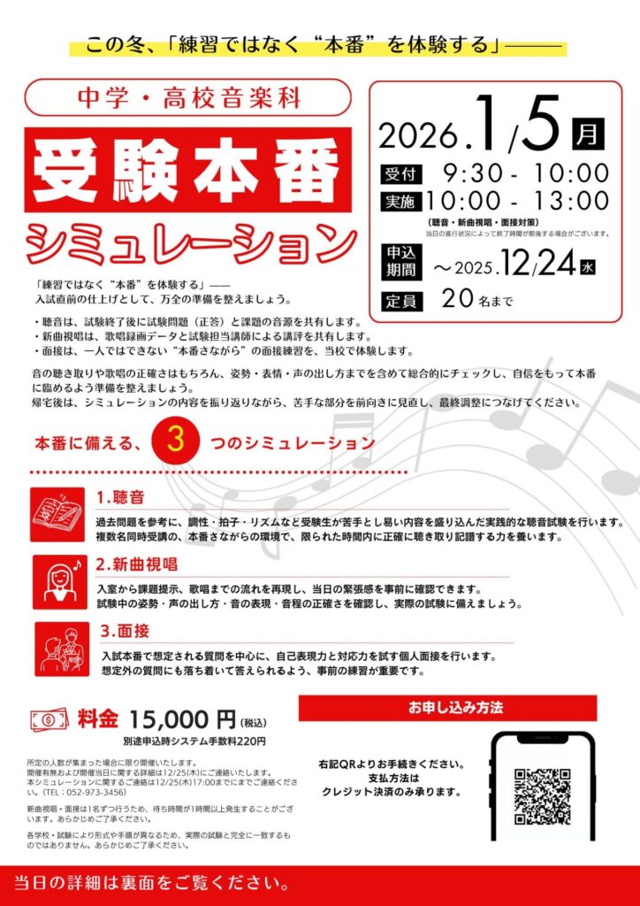 実施 10:00~13:00(聴音・新曲視唱・面接対策)