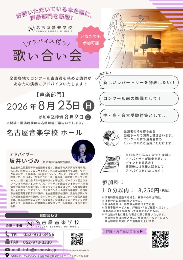 坂井いづみ先生によるアドバイス付きの歌い合い会です。どなたでもお気軽にご参加ください♪