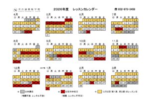2026年度レッスンカレンダー