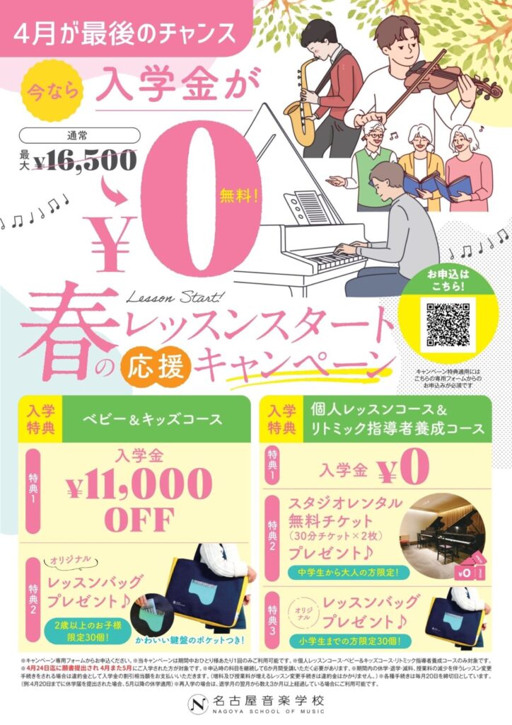 【4/24まで! 最大入学金¥0 】春のレッスンスタート応援キャンペーン